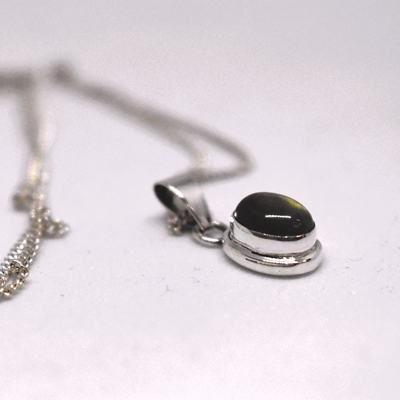 Este dije de labradorita y plata es la definición de elegancia versátil. Su tamaño discreto pero impactante lo hace perfecto para el uso diario, aportando un toque de misterio y sofisticación a cualquier atuendo, desde una blusa de oficina hasta un vestido de noche.